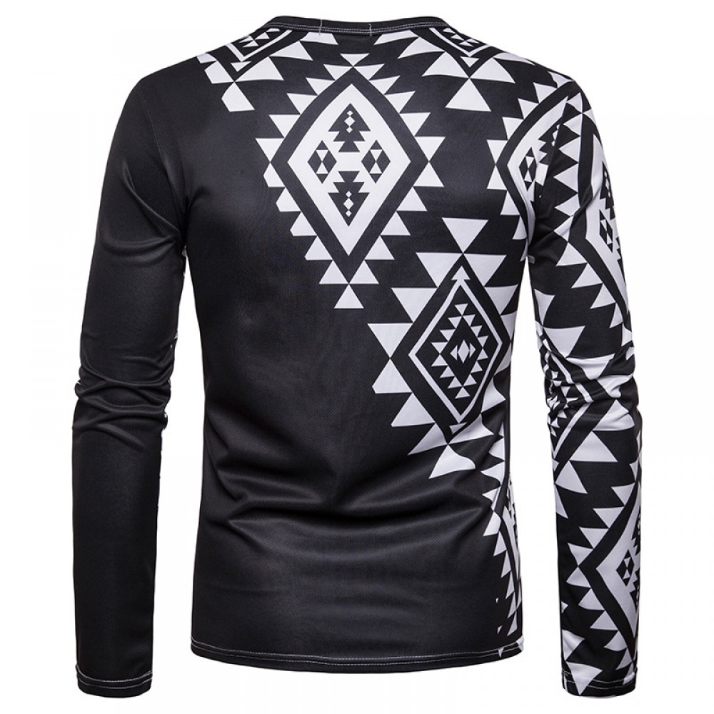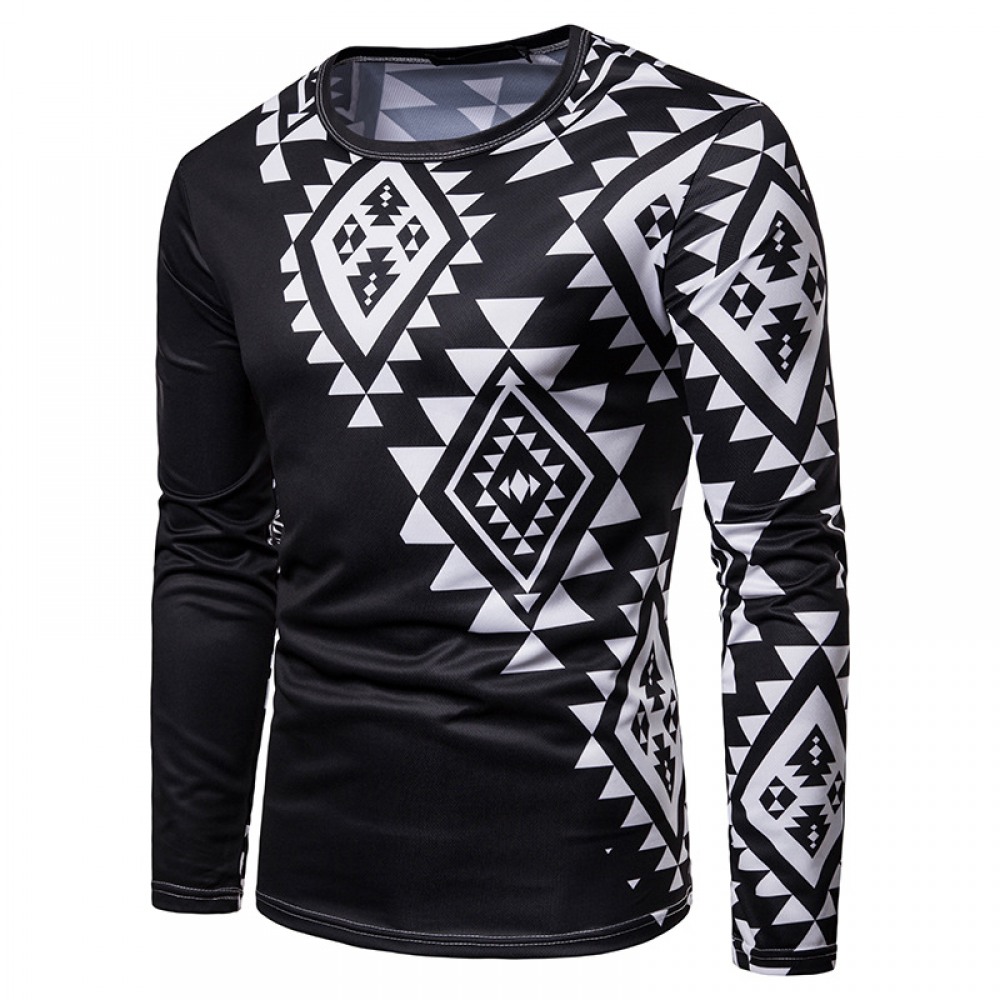 Men's Diamond 3D Printing Men's Round Neck Long Sleeve T-Shirt