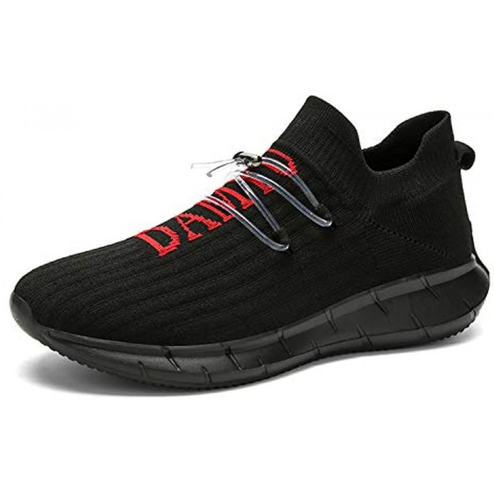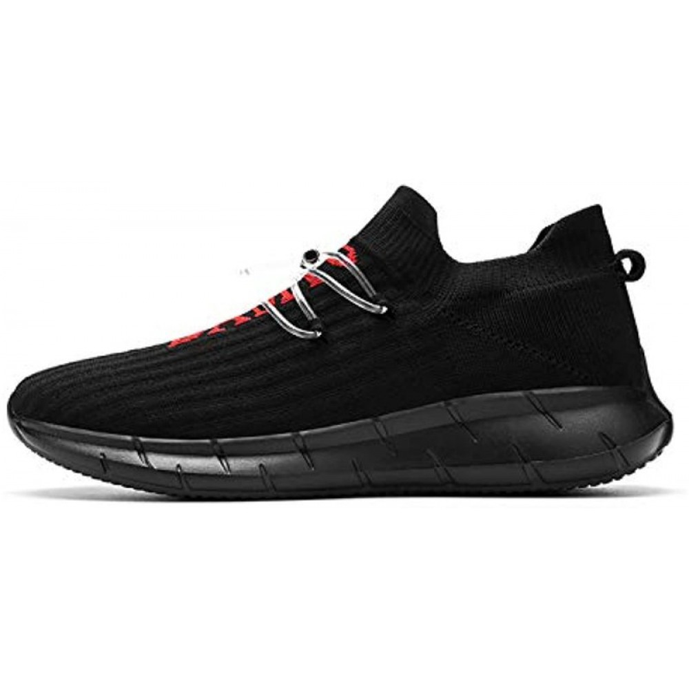 Men's Running Shoes Breathable Knit Slip On Sneakers Lightweight Athletic Shoes Casual Sports Shoes Black