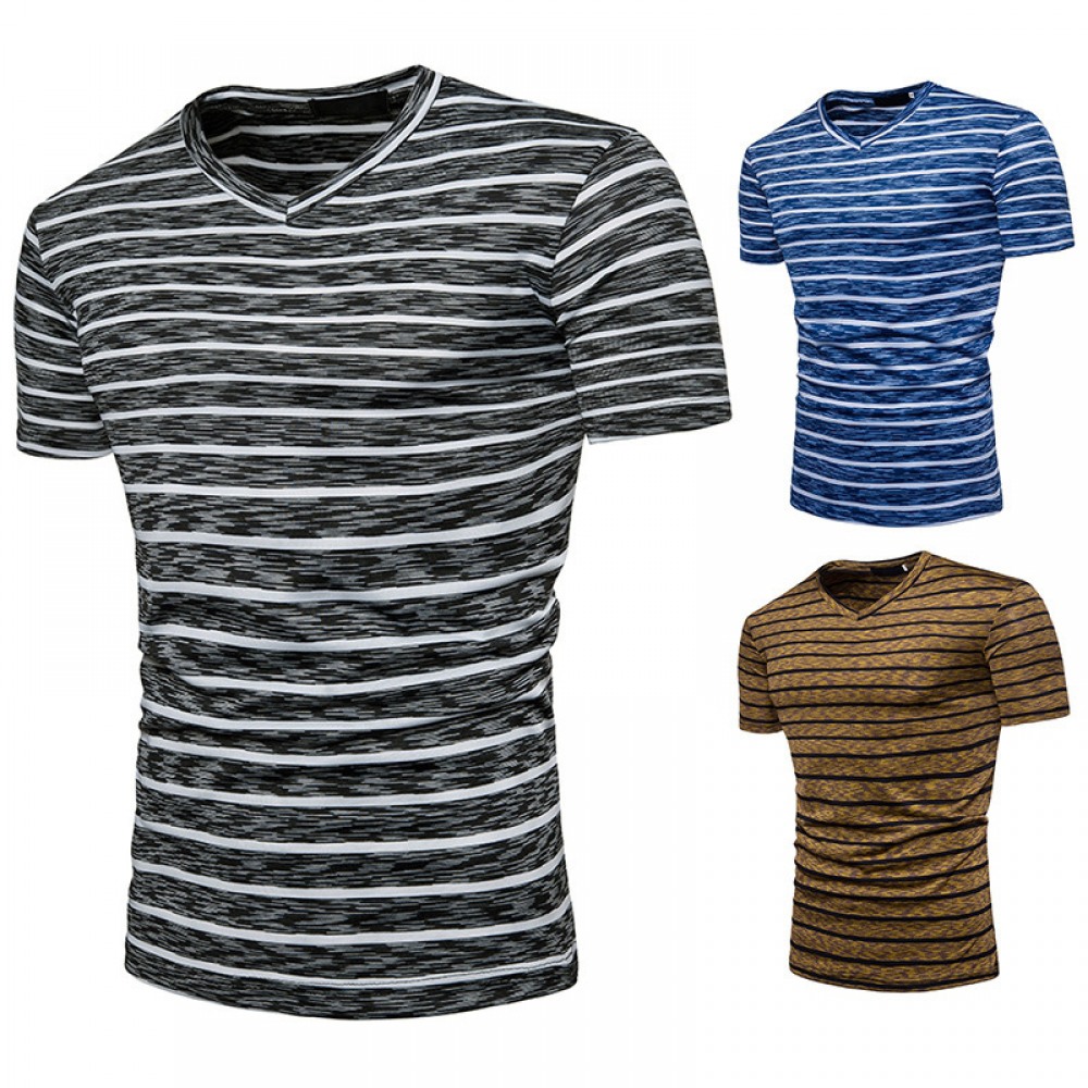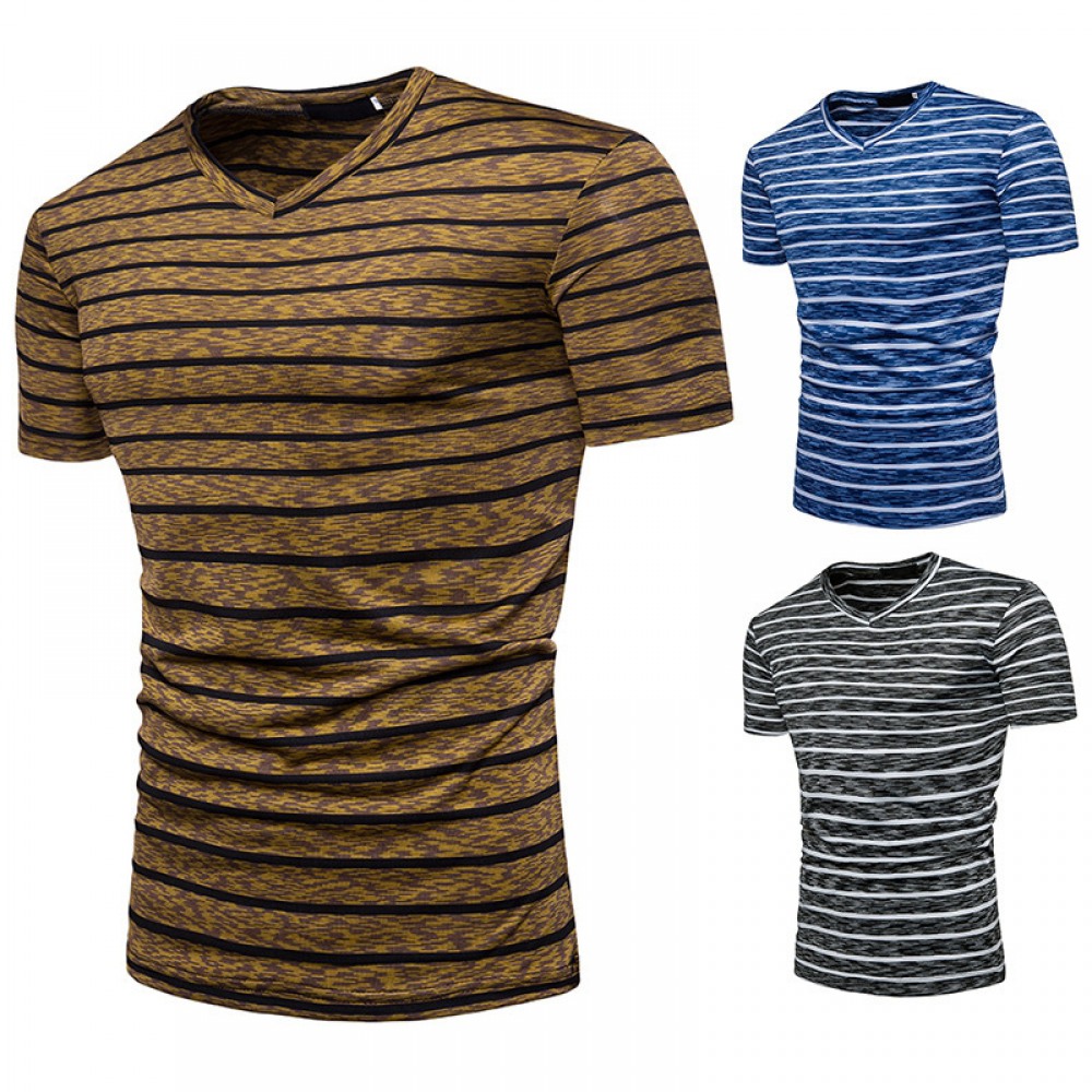 New Summer Men's Short-Sleeved T-Shirt Men's Contrast Striped Slim Casual T-Shirt