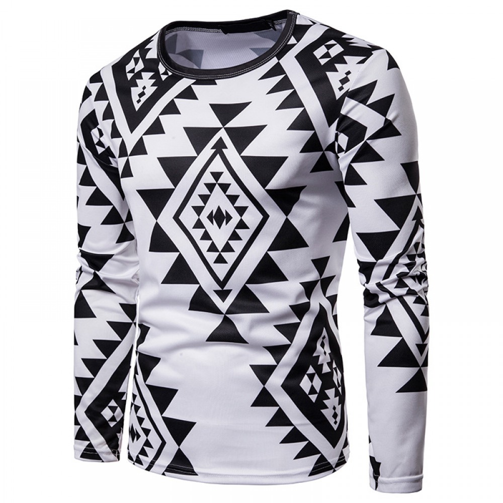 Men's Personality Diamond Symbol Letter Printing Long-Sleeved T-Shirt
