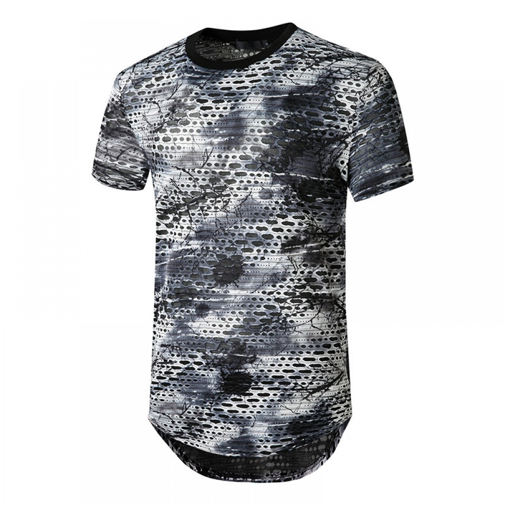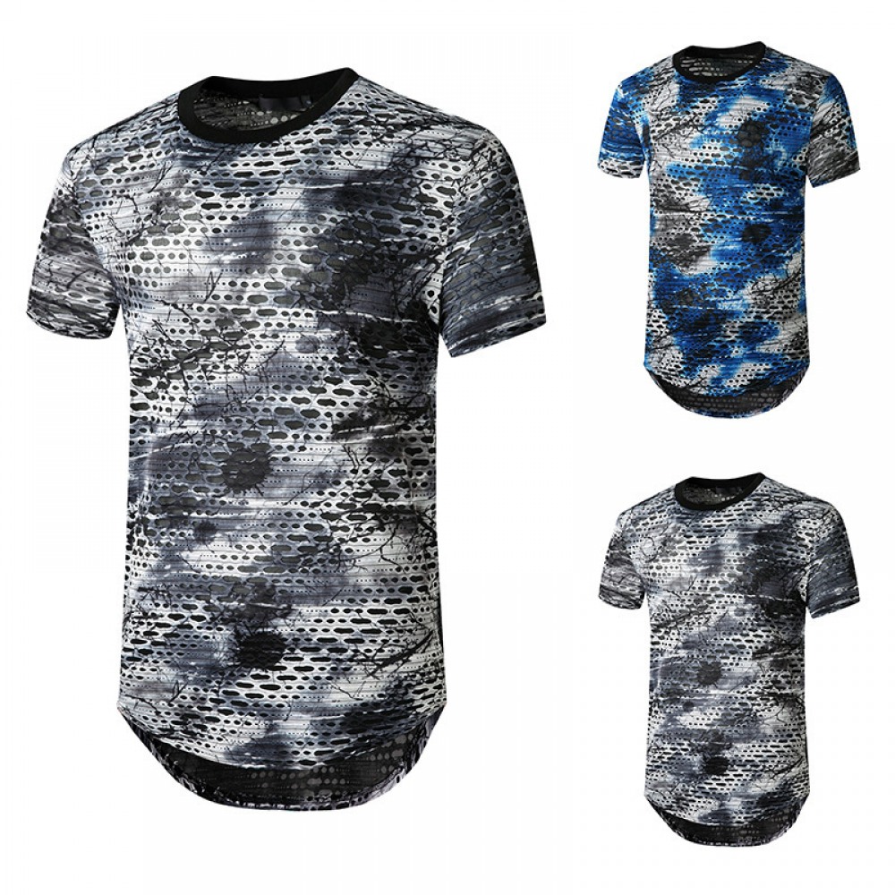 Men's 3D Geometric Stripe Printing Round Neck Hip-Hop High Street Short-Sleeved T-Shirt