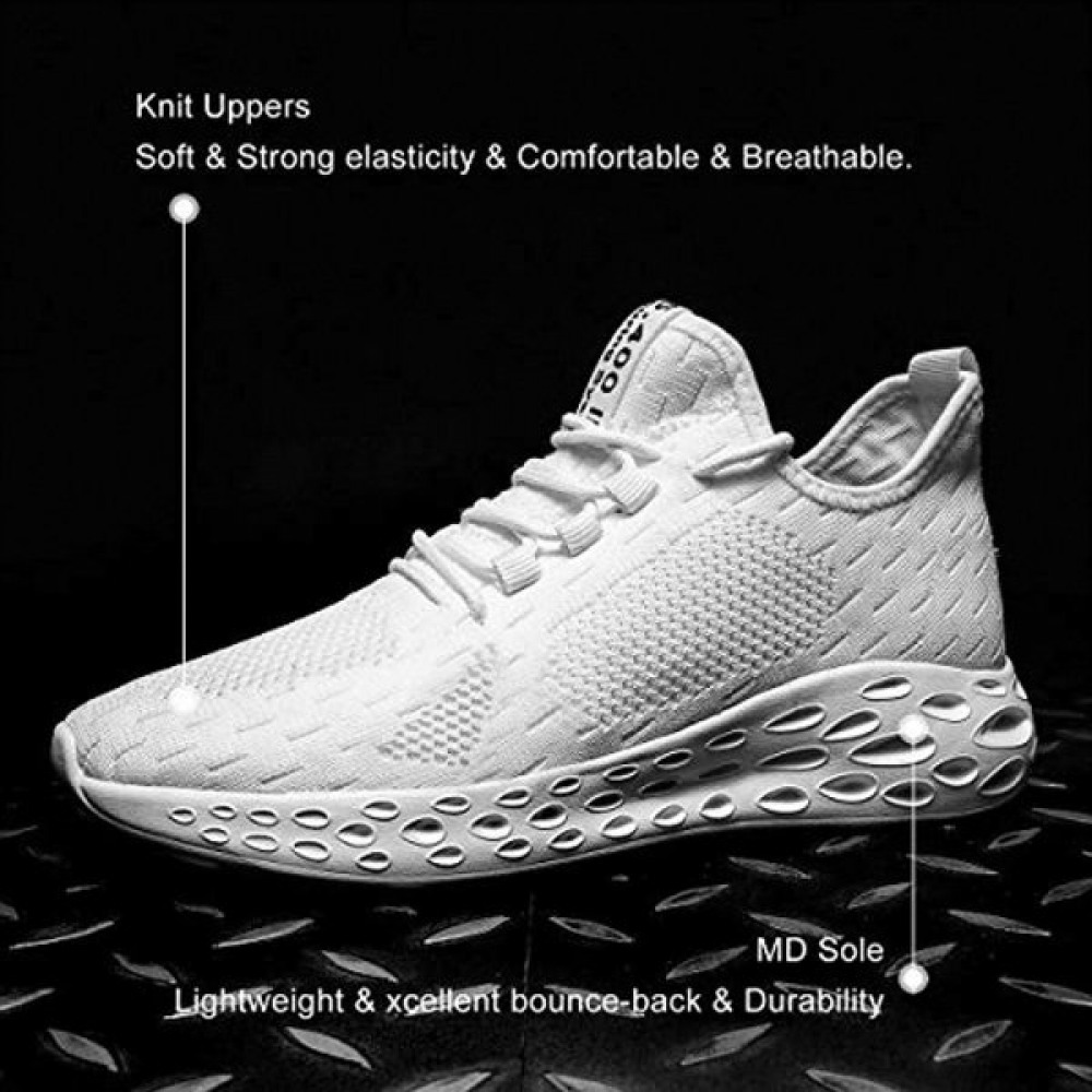 Mens Running Shoes Slip On Walking Shoes Fashion Breathable Sneakers Mesh Soft Sole Casual Athletic Lightweight White