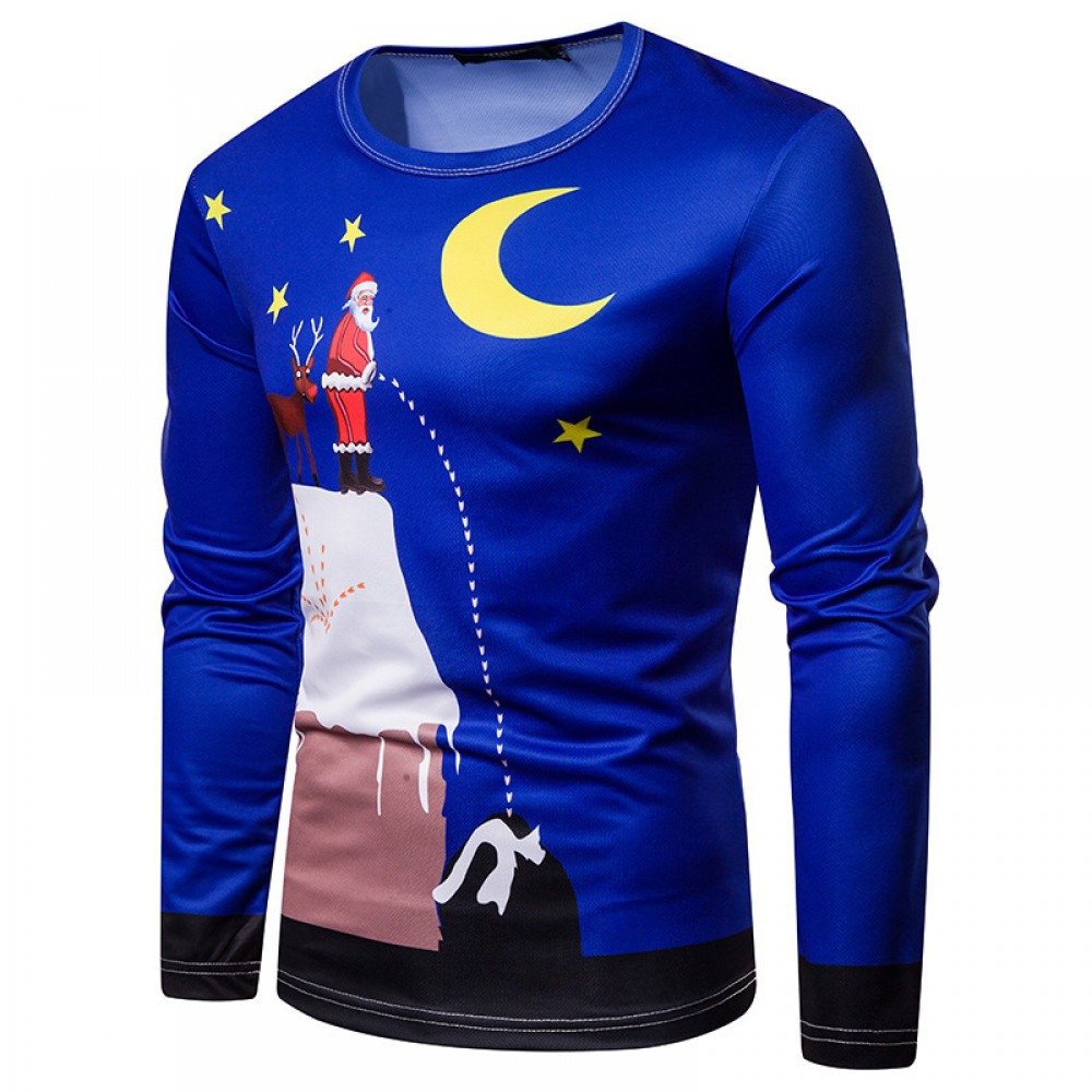 New 3D Personality Printing Fashion Men's Christmas Elk Pattern Long-Sleeved T-Shirt