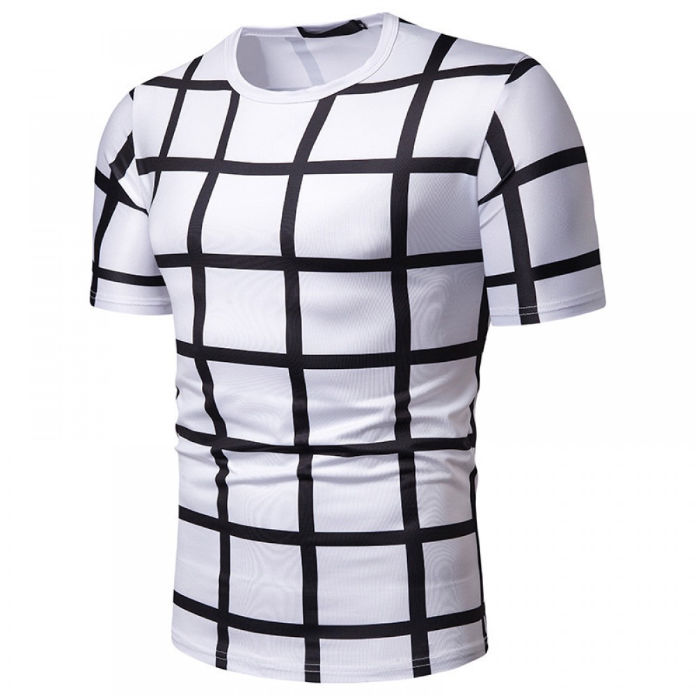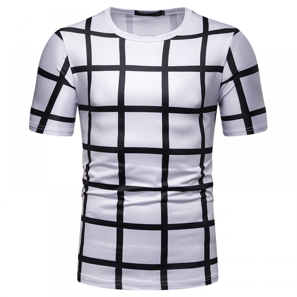 New Summer Men's Plaid Print Short-Sleeved T-Shirt